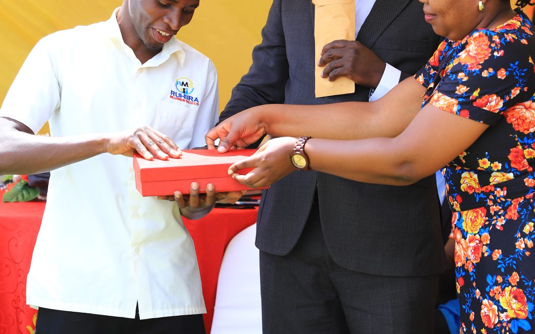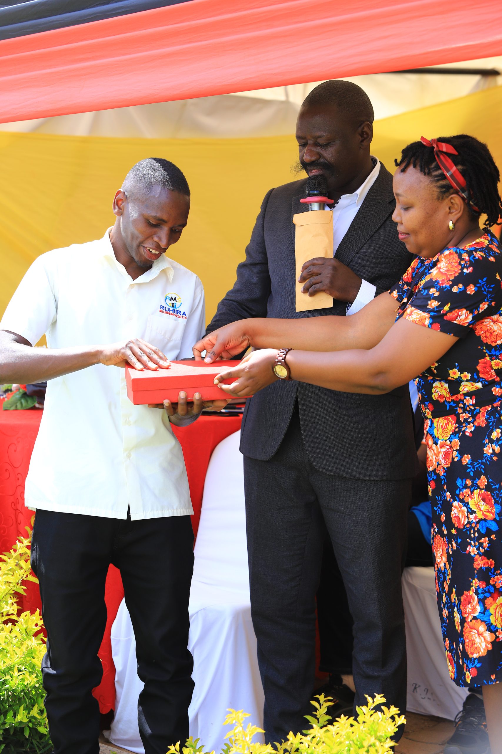 Mugisha Henry – Ngarama Branch, receiving his award as the Best Branch Manager of the Year 2024