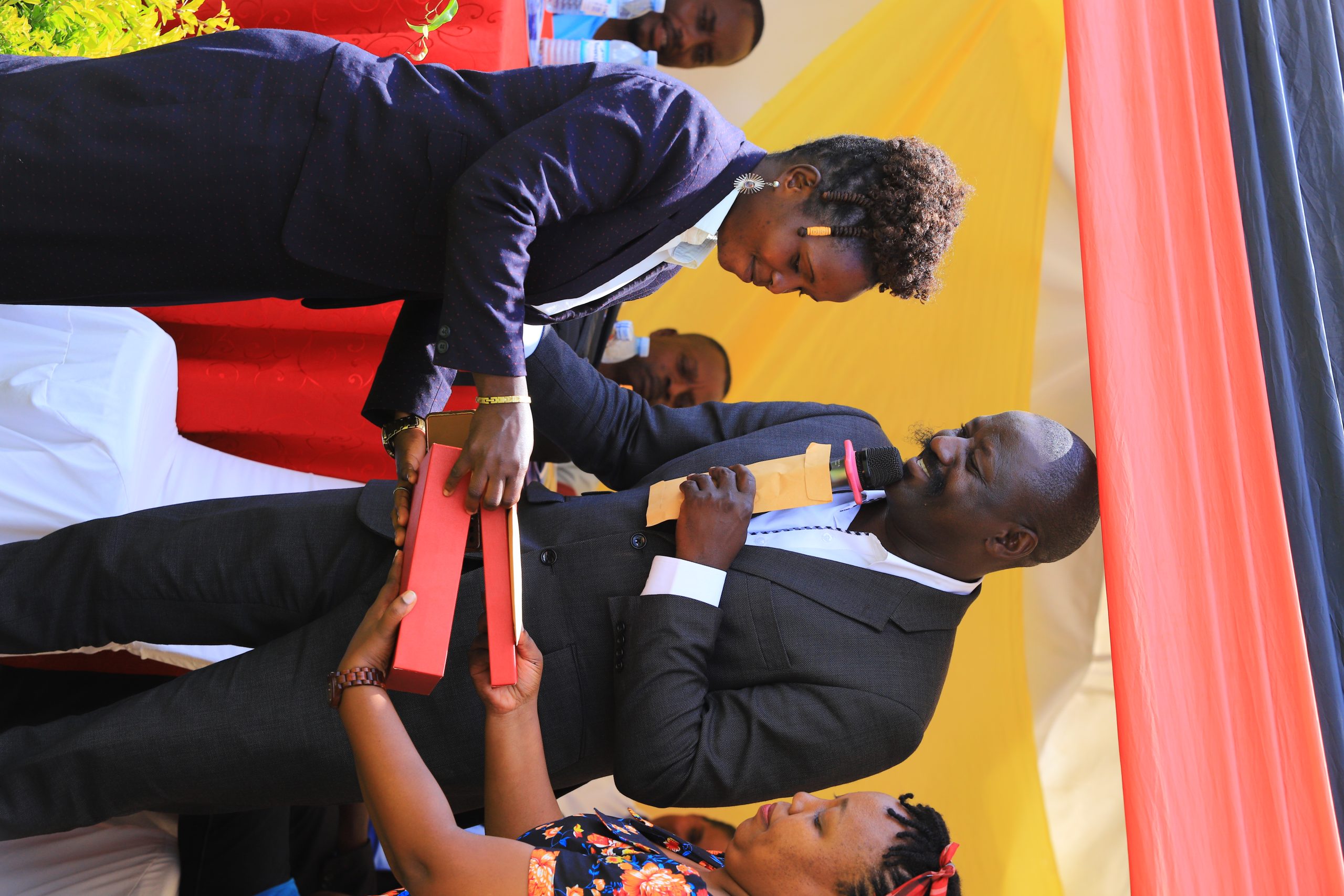 Tumuhereze Vastine – Ruhiira Branch, receiving her award as the best Credit Officer of the year 2024
